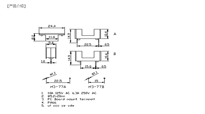 PCB板保险丝座,保险丝座H3-77(PCB板安装)|汽车保险丝座H3-77(PCB板安装)|保险丝盒H3-77(PCB板安装)产品介绍: