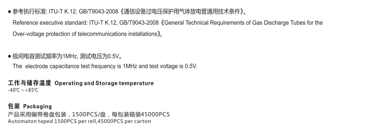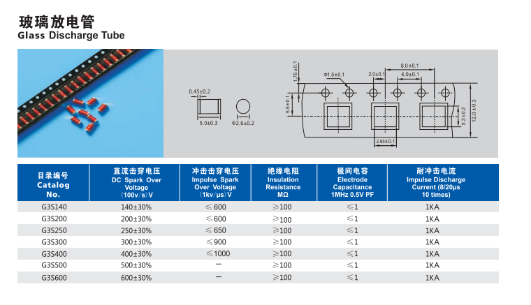 G3S Φ2.6x5.0气体放电管介绍: