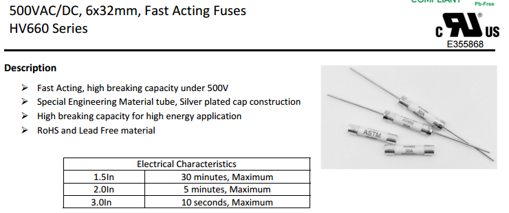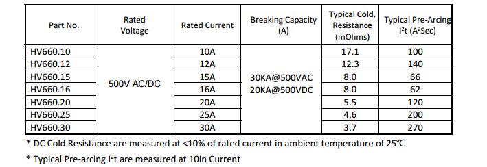 玻璃管保险丝HV660 series 500Vac/dc 10A-30A