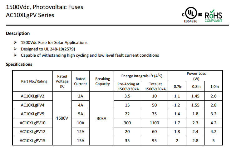 AgPV Series1500Vdc, Photovoltaic Fuses介绍: