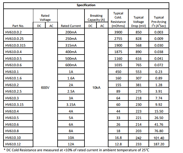 熔断器HV610 600VAC/DC 10KA 100mA-12A介绍:
